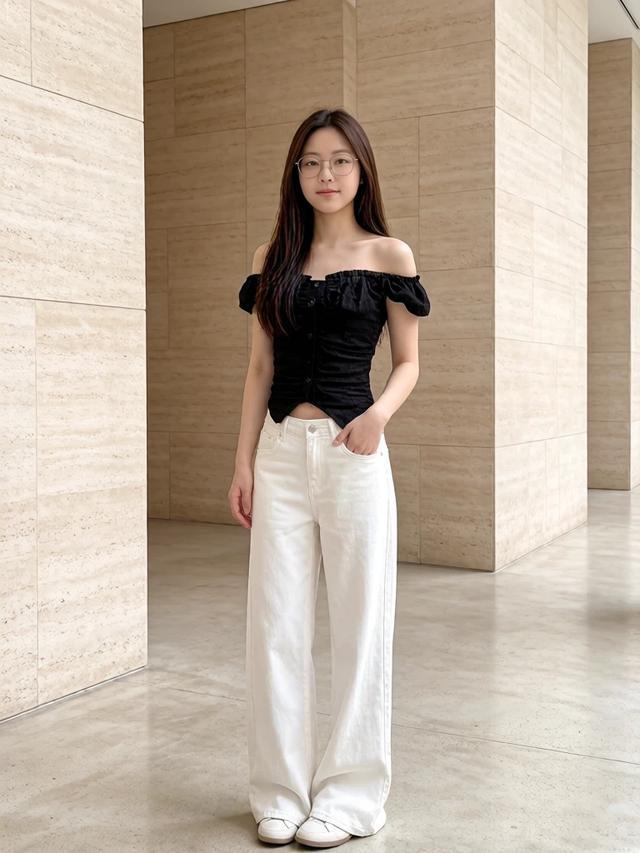 文章最后再说一句,选择白色长裤的情况下,尽量别搭黑色上衣,各种款式的黑色上衣与白色长裤搭配都是普通人难以穿出高级美感的。